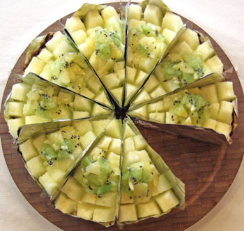 마스카포네치즈가 베이스인 크림에 신선한 멜론과 골드, 그린키위가 함께 올라간 상큼한 타르트