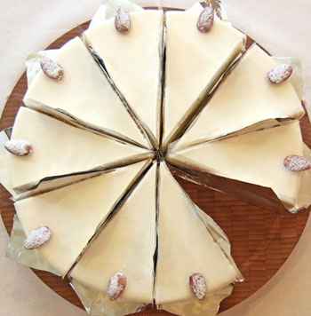 아몬드스폰지 케이크에 화이트 초콜릿 생크림이 조화로운 케이크