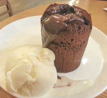 따뜻하게 데워 흘러내리는 진한 초콜릿과 바닐라 아이스크림의 조화
