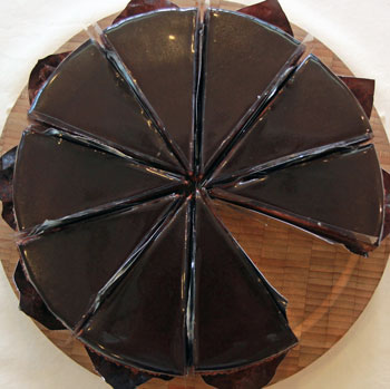 다크초콜릿 가나슈와 럼에 절인 건포도가 살짝 들어간 진한 초콜릿 케이크